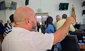 O Munhoz pode até pensar que é vereador, mas na última terça-feira (30), o Presidente Luis Santos (Republicanos) acabou lembrando que ele não é... e cobrou o uso do crachá dele (que é obrigatório para os funcionários), para ficar dentro do plenário. O Presidente falou em alto e bom som no microfone: “Vou pedir que o Senhor se retire se não usar!”... "Se o Senhor tem vergonha de usar o crachá, nem venha para o plenário!".