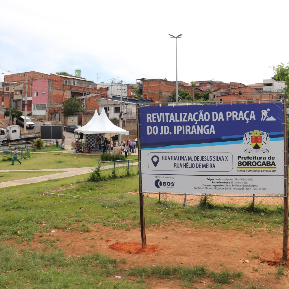 Com a presença da comunidade, a Prefeitura de Sorocaba anunciou, na manhã desta sexta-feira (25), a revitalização da Praça “Etelvina Vieira de Miranda”, localizada no Jardim Ipiranga, na Zona Oeste da cidade. As obras estão sob a responsabilidade da Secretaria de Serviços Públicos e Obras (Serpo) e serão executadas em até 60 dias, em parceria com o BOS (Banco de Olhos de Sorocaba), por meio de medida mitigadora.